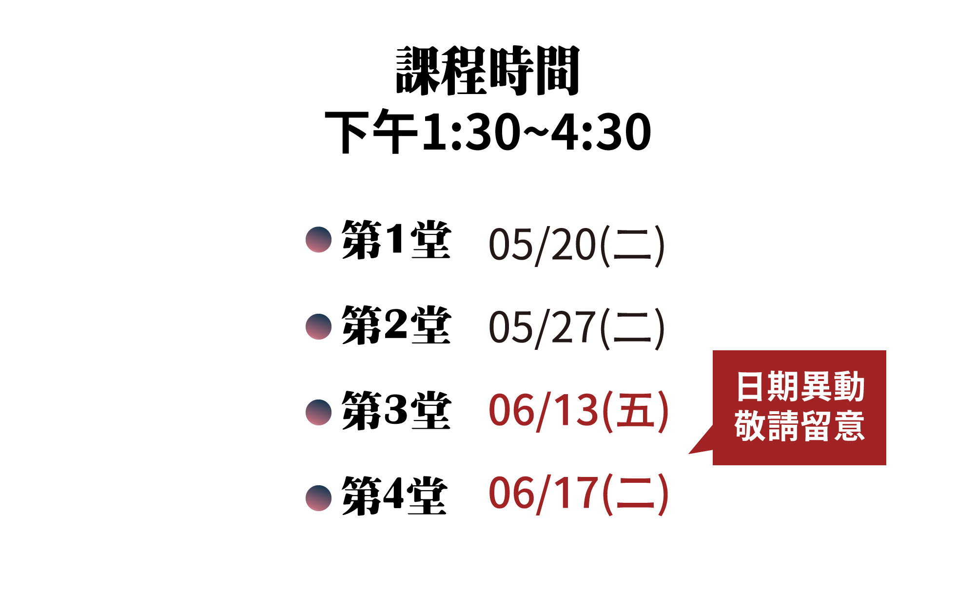 ⚠️如已上過課程申請退費,將依未上課堂數之總金額60%退費