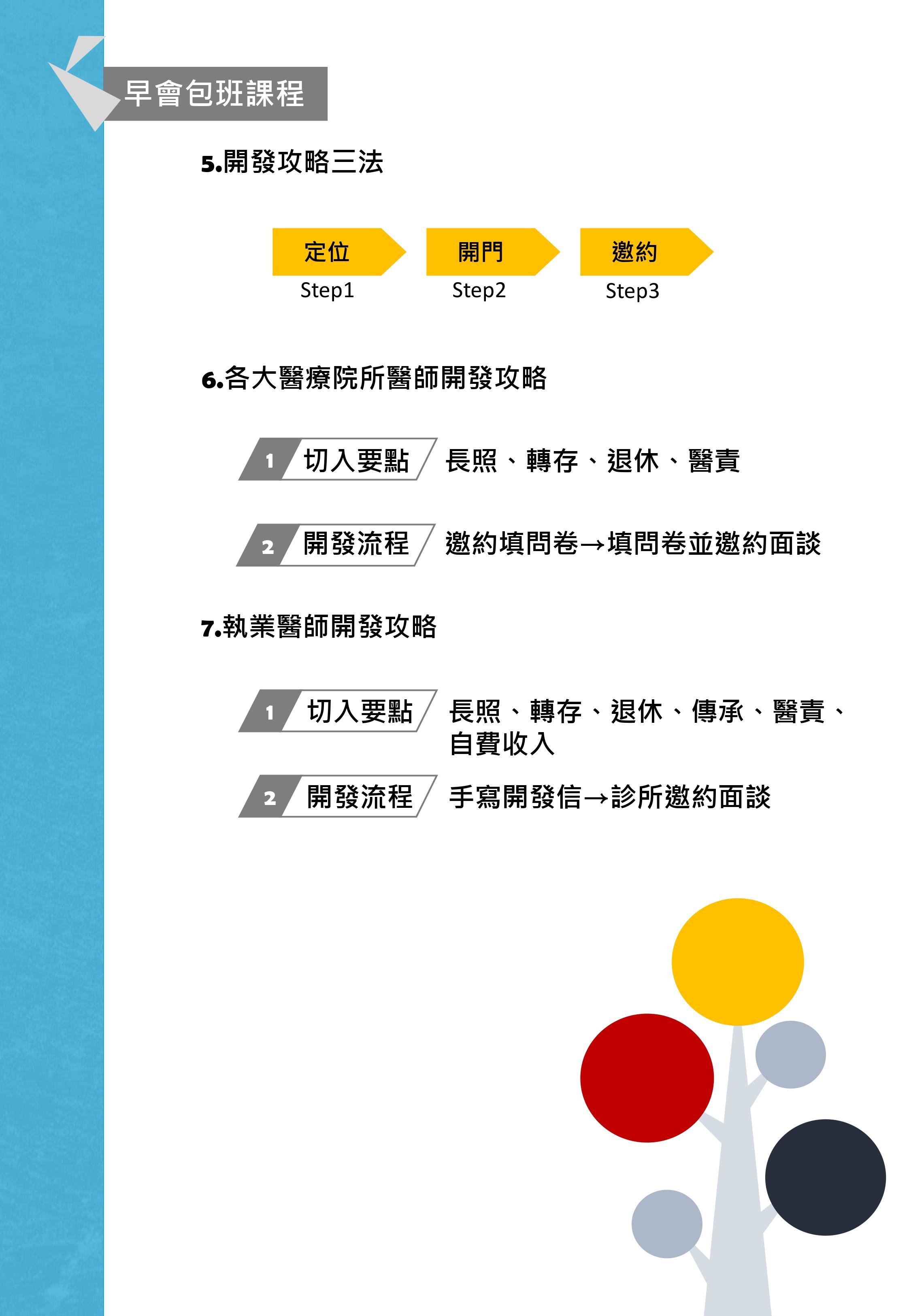 ▲針對醫師族群的超強開發實務攻略,透過系統化的課程讓你輕鬆學會醫師開發技能,不要被醫師嚴肅的外表嚇到了!其實他們內心再柔軟不過了。只要用對方法就能創造源源不斷的醫師客戶。