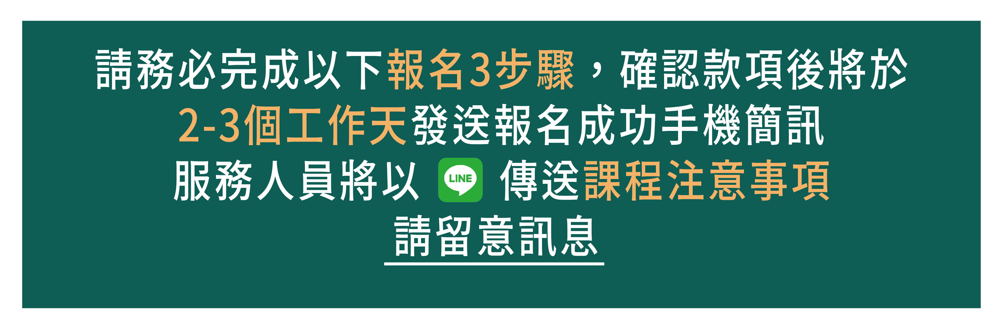 ③發票一經開立恕不更換,如需開立三聯式發票請詳填報名表抬頭及統編資料