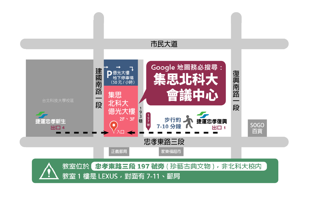 (台北市大安區忠孝東路三段197號旁,非北科大校內,Lexus汽車樓上)