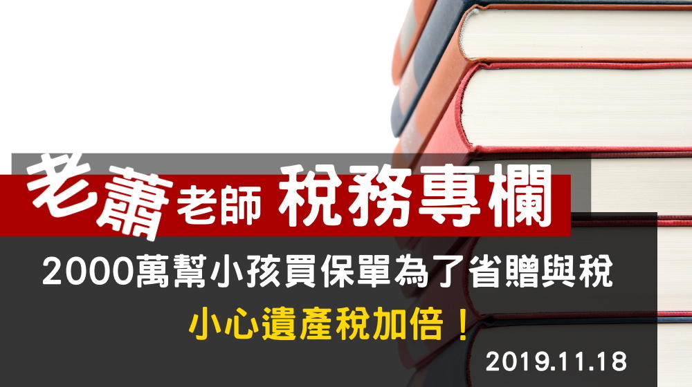 如果父母出錢幫子女投保時,以子女為要保人,須繳納贈與稅。以本案2000萬元保單,扣除220萬元免稅,得繳178萬元贈與稅。這位父親為了省178萬元贈與稅,以自己為要保人,結果保單變成遺產,最後不但要補繳200萬遺產稅還被罰了160萬元,省稅不成還多付出一倍的代價。