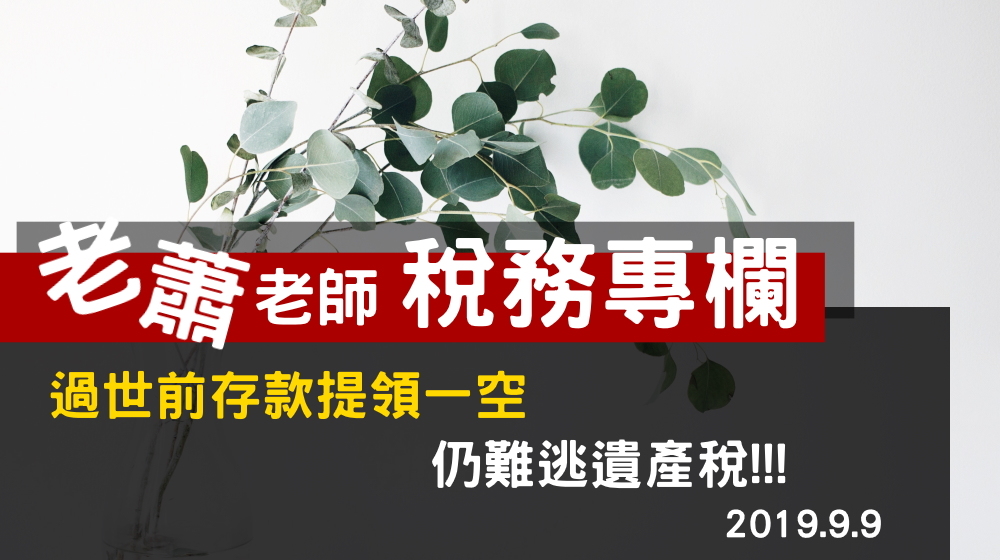 ***請注意:即使是配偶領取存款,夫妻間雖無贈與稅問題,但因為財產移轉兩年內過世,仍要課徵遺產稅喔!